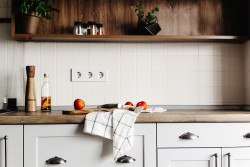 Designet er enkelt og tidløst, og farven Coco kan kombineres med andre tekstiler fra Humdakin-serien for et harmonisk udtryk i køkkenindretningen.